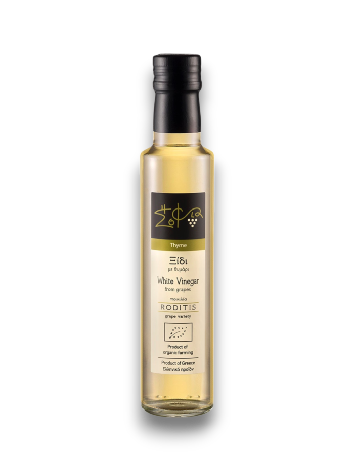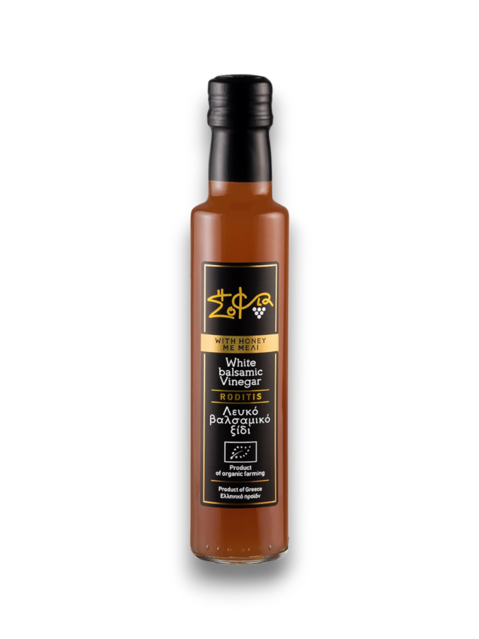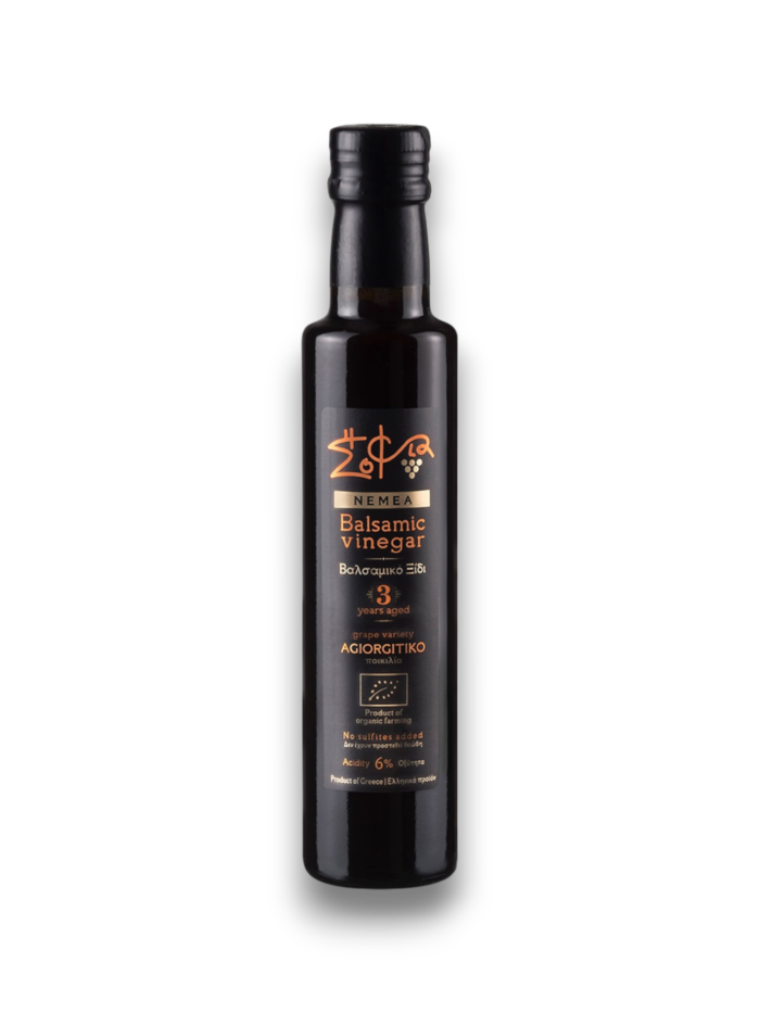Vinagres de uvas griegas, como la uva roja autóctona Agiorgitiko y la uva blanca Roditis, sin conservadores ni aditivos artificiales en sus productos. Puedes sentir el suave sol griego, su respeto por el medio ambiente y el gran sabor que la naturaleza nos brinda en cada gota.