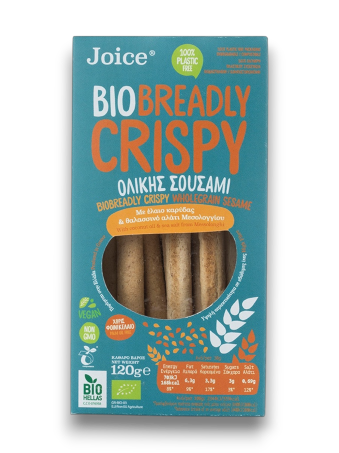 Cereales y palitos de pan con maravillosos sabores y aromas de la naturaleza a base de ingredientes como linaza, trigo sarraceno, quinoa, amaranto (todos de cultivo ecológico), canela de Ceilán y tahini integral griego